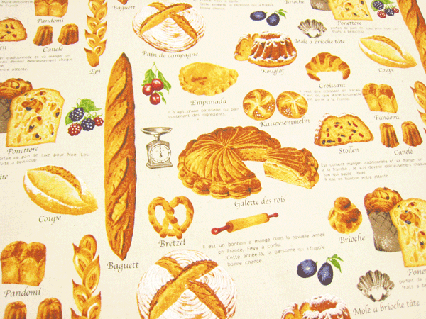 【10cm単位価格】 Bread パン柄 ベーカリー コットンリネンキャンバス 生地 布 綿80% 麻20% 約108cm幅 ゆうパケット2m対応