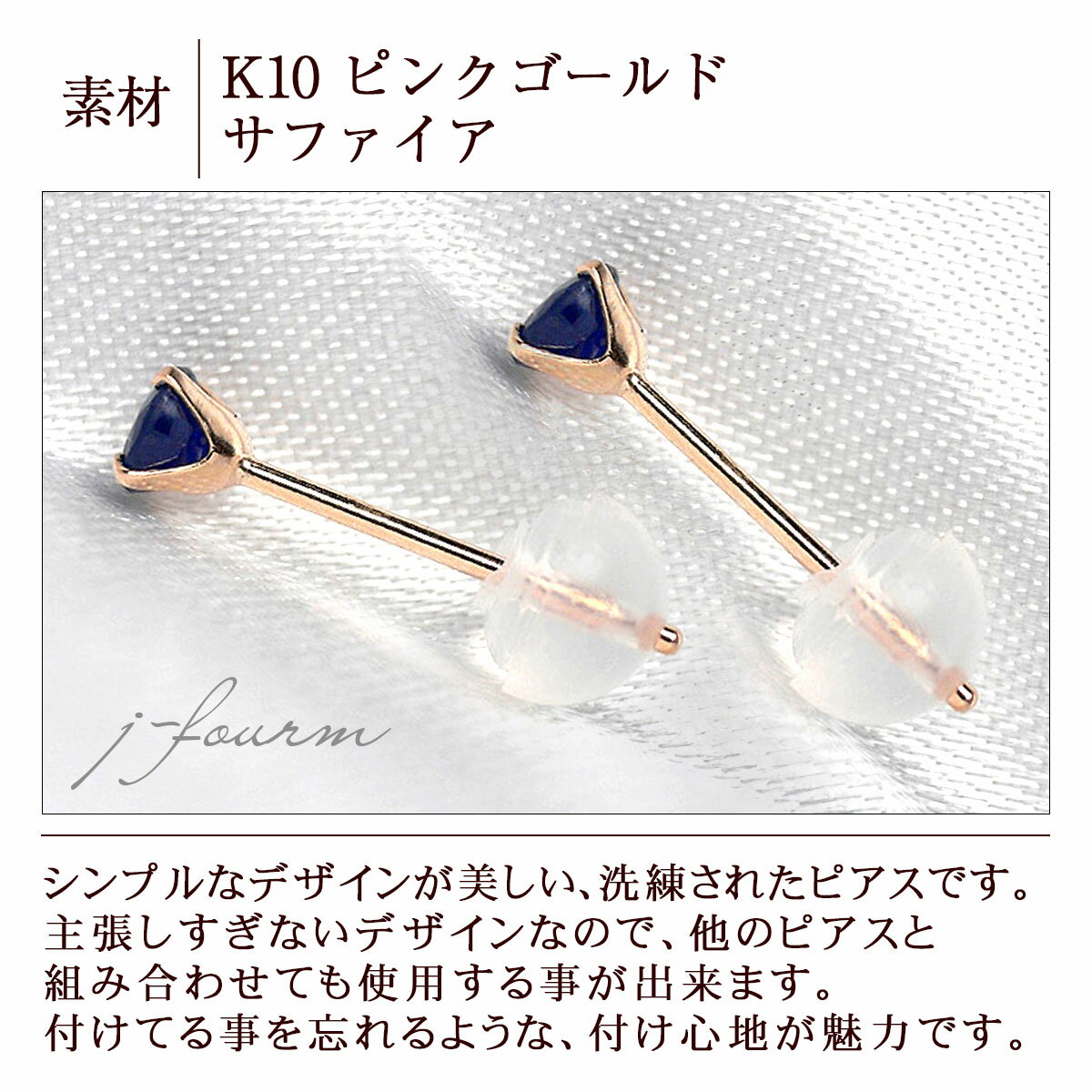 石天然サファイア3.0mmラウンドカットポストK10ピンクゴールド 0.65φ9.5mm重 さ約0.3g(ペア) 【カタログコードcat-0024】