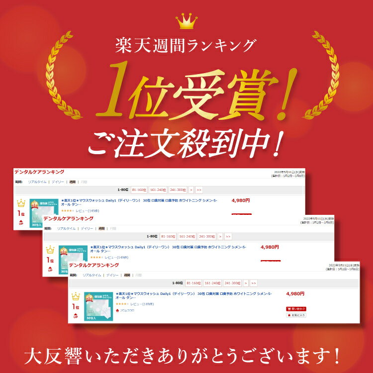 【9/4 20:00~9/11 01:59 ポイント5倍】★楽天1位★マウスウォッシュ Daily1(デイリーワン) 30包 口臭対策 口臭予防 ホワイトニング シメン-5- オール タンパク質 歯 黄ばみ セルフ ホワイトニング 虫歯予防 歯周病予防 歯肉炎予防 洗口液 個包装 携帯用 医薬部外品