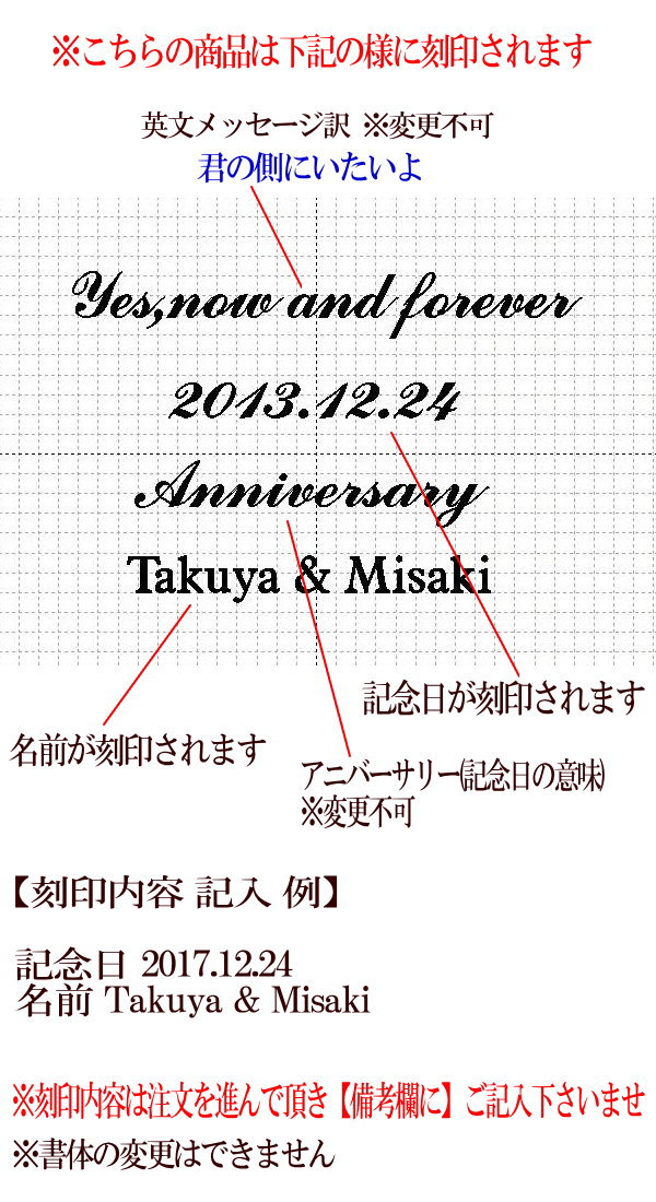 ■世界にひとつだけのアニバーサリーネックレス ■ 1個 単品売り ■名前 記念日の刻印無料 ■刻印イメージ 定型メッセージ【変更不可】 ※画像2番目の英文メッセージが刻印されます 2018.12.24 【記念日が入ります】 Anniversary 【記念日の意味です変更不可】 Takuya & Misaki 【名前が入ります】 ■刻印内容は注文画面を進んで頂き 備考欄にご記入下さい 【例】 2018.12.24 Takuya & Misaki ※『刻印内容を書き忘れた』 場合は当店へご連絡ください ※書体の変更は出来ません 写真と同じとなります ■素材 金属アレルギー でも安心なステンレス製 ステンレスプレート : 縦3.8cm 横2.2cm ステンレスチェーン : 60cm ※到着後にハサミでカットし 40cm 45cm 50cm 60cm など調整可能です ■追加代金【+1000円/1個】でジルコニア【石付き】もご用意出来ます 約4mmの大きなジルコニアが輝きを放ちます ※注文後に追加代金がプラスされた金額のご請求となります ----------------------- ■関連 ステンレスネックレス ステンレスペンダント ステンレスチェーン ネックレスチェーン 金属アレルギー 安心 シルバー カラー ドックタグネックレス プレート ドックタグペンダント ドックタグプレート プレートネックレス プレートペンダント オリジナル オーダーメイド クリスマス プレゼント 刻印 刻印無料 名入れ イニシャル ネーム 名前 記念日 メッセージ 文字 誕生日 IDプレート IDタグ ID 認識票 迷子札 ネームタグ ネーム入り 文字入れ 印刻 ネームプレート ネームネックレス 刻印ネックレス 刻印ペンダント 刻印無料ネックレス 刻印無料ペンダント 名入れ刻印 ネーム刻印 イニシャル刻印 文字刻印 メッセージ刻印 誕生日刻印 名前刻印 記念日刻印 文字入れ刻印 名入れ刻印無料 ネーム刻印無料 イニシャル刻印無料 文字刻印無料 メッセージ刻印無料 誕生日刻印無料 名前刻印無料 記念日刻印無料 文字入れ刻印無料 メンズ レディース アクセサリー メンズネックレス レディースネックレス 刻印により ペアネックレス などペアアクセサリーとしてもお勧め ペア カップル ペアルック ■ご来店ありがとうございます 当店ではシンプル系から綺麗め、大人っぽいデザインまでファッションに合わせやすいメンズからレディースのアクセサリーをお取扱いしているアクセサリーショップです。