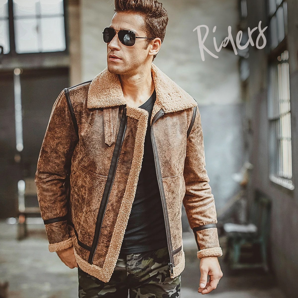 ビンテージな革の質感とクラシックなアビエーターデザインが目を引くポイント。