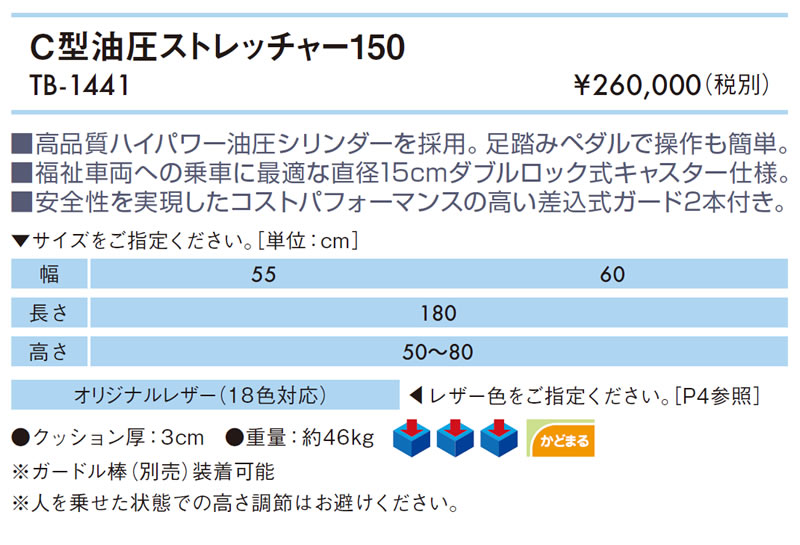 TB-1441 C型油圧ストレッチャー150 高品質ハイパワー油圧シリンダーを採用。