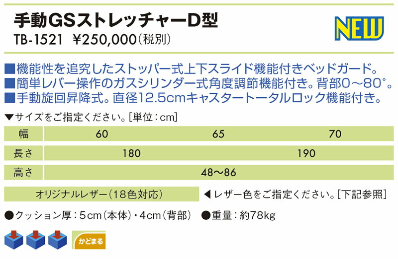 【ポイント5倍】高田ベッド 手動GSストレッチャーD型 ストッパー式上下スライド機能 トータルロック機能 キャスター 手動昇降 高さ調節 ベッドガード 医療用 施設 病院 救急 移送 搬送 移乗 介護 TB-1521