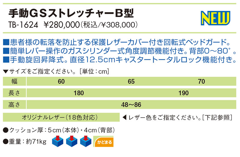 高田ベッド製作所正規特約店のエンバシーで安心をプラス! 関連商品はこちら(孔加工の有無やサイズ違い、オプションなど) 手動GSストレッチャーD型 ご注文はこちらから